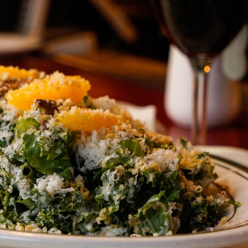 Organic kale with yogurt Caesar dressing, orange, anchovies, parmesan & seasoned bread crumbs | Add Roast Chicken +$4.00
